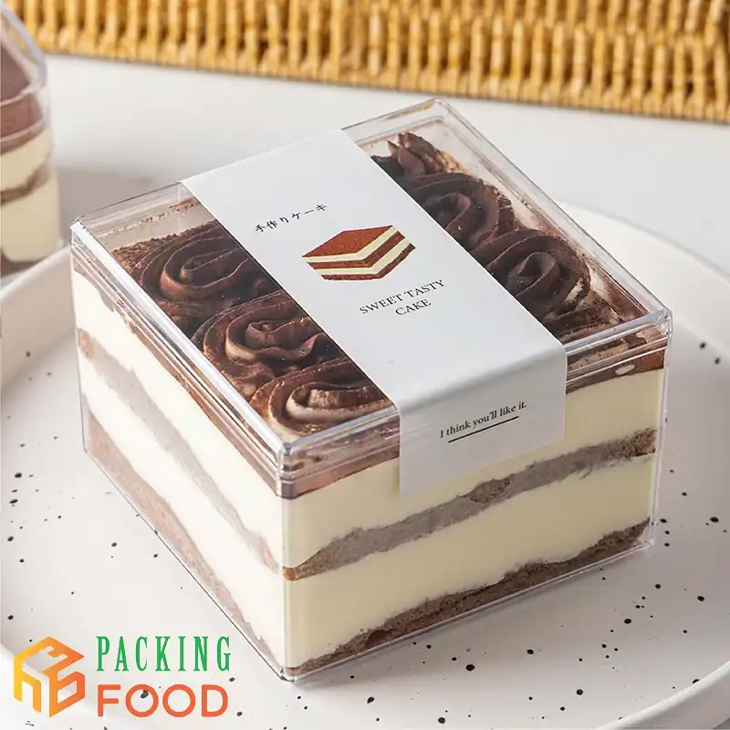 Hộp nhựa PS mica vuông mã 9560 là dòng bao bì cao cấp, dung tích 400ml, thiết kế vuông trong suốt với kích thước 9.5 × 9.5 × 6.5 cm. Đây là lựa chọn lý tưởng để đựng bánh lạnh (mousse, tiramisu), các loại hạt (hạt dẻ, hạt điều) và bánh cookie.
